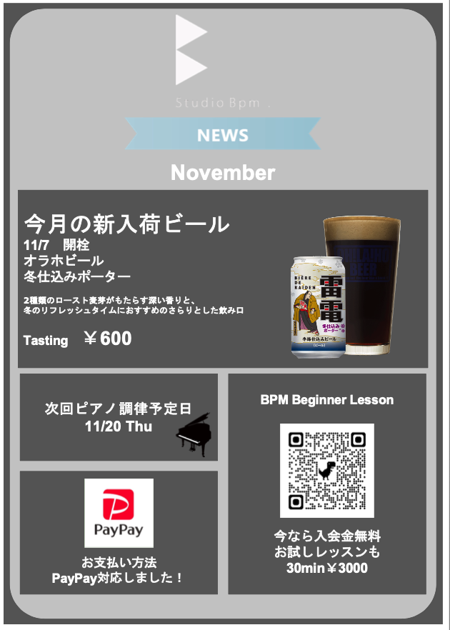 11月のスタジオBPMもなにとぞ宜しくお願い致します !!